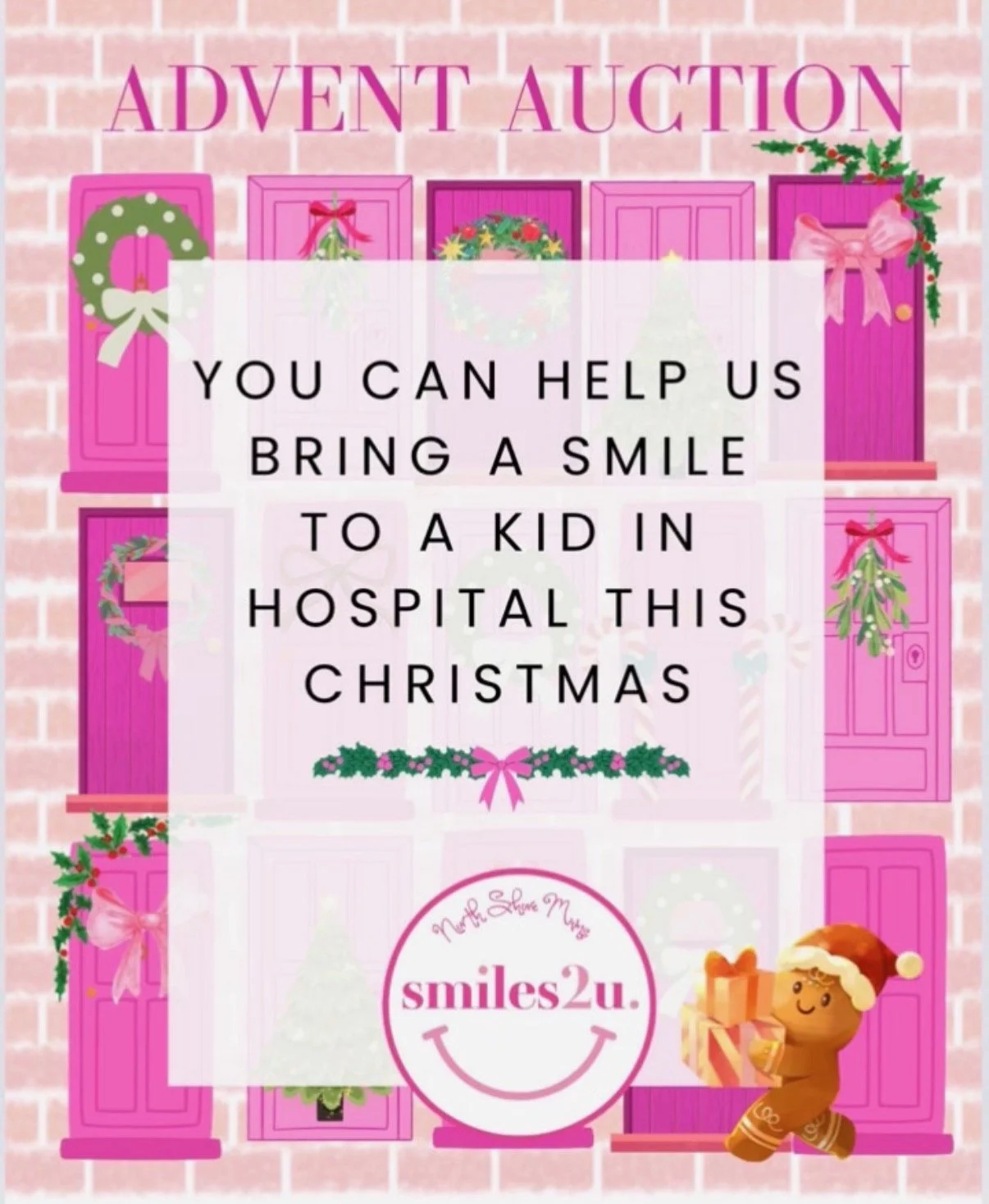 This November, join our Smiles2U Advent Online Auction and help us raise funds to bring Christmas and Smiles to children and parents in hospital.